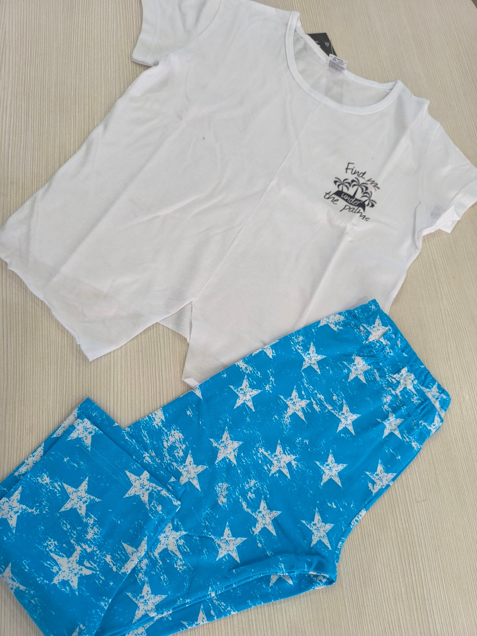Σετ με καπρι κολαν Συνθεση – 94% Βαμβακι 6% Ελασταν Χρωμα – Λευκο/Μπλε