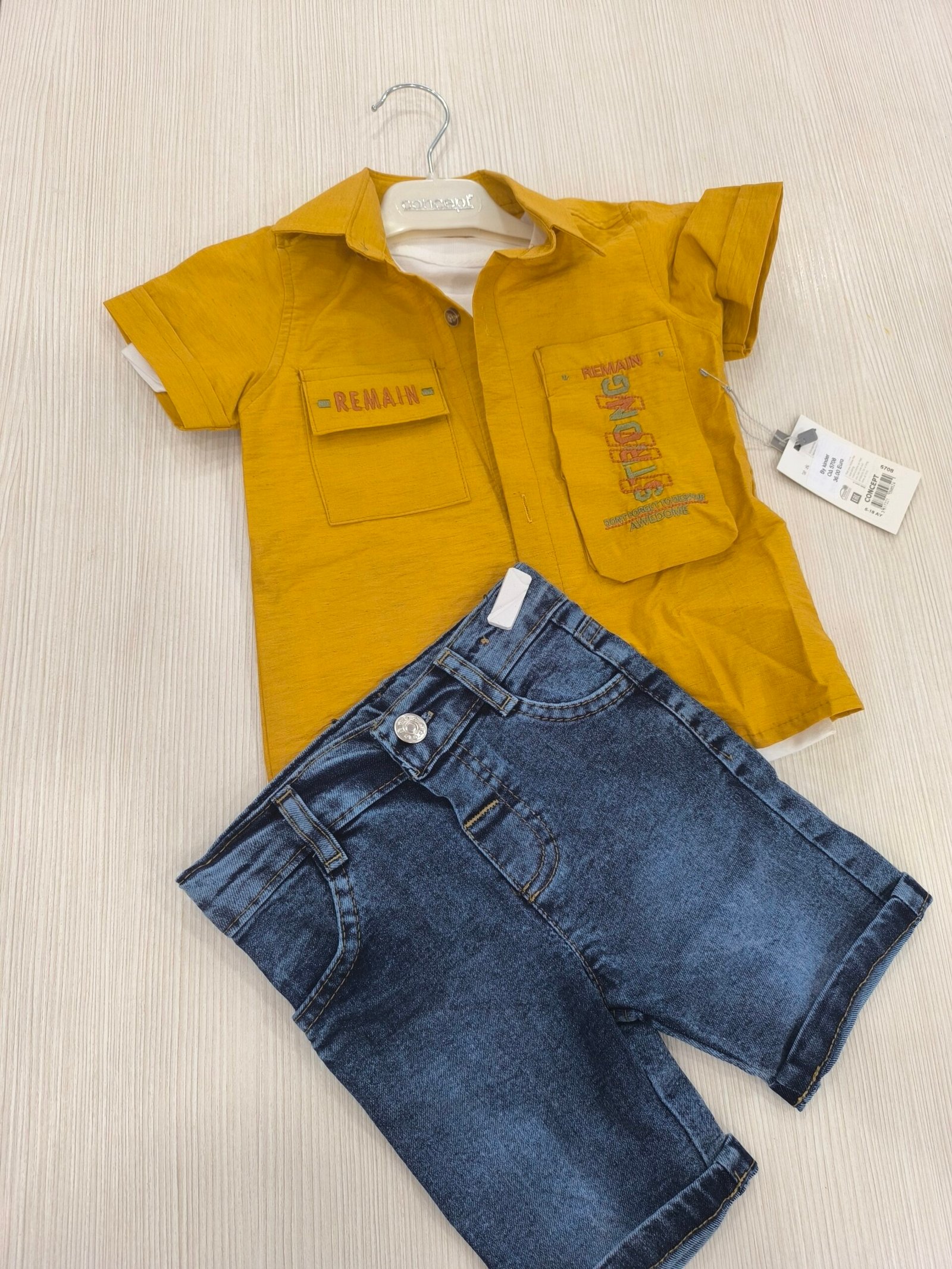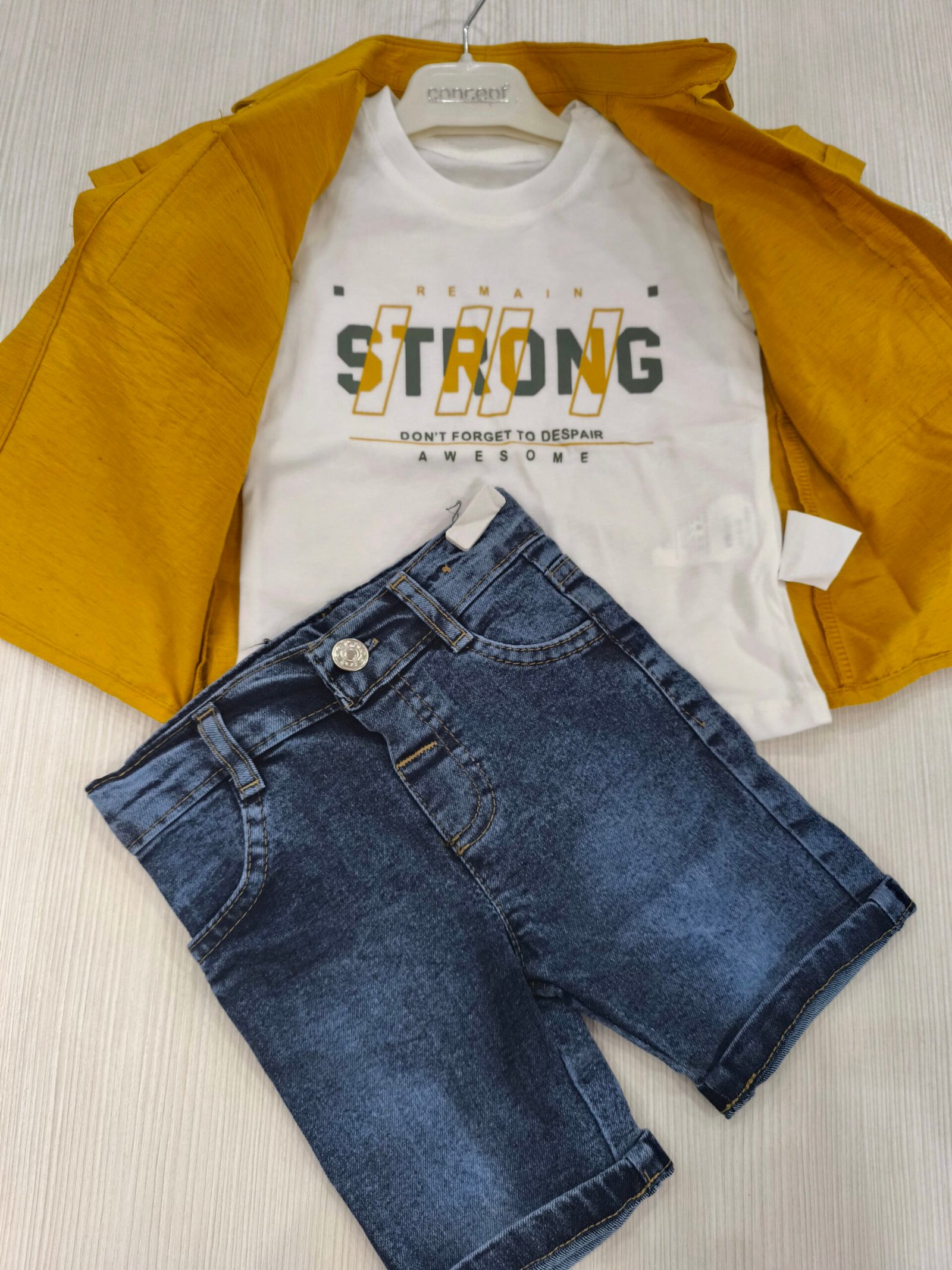 Σετ – Κοντομακο μπλουζακι,πουκαμισο & τζιν βερμουδα Υλικο – 100% Βαμβακι